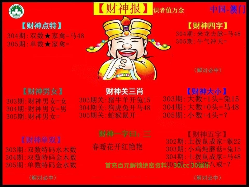 | 304期:【前后四肖】开:马48准 前【兔蛇龙鼠】后【马鸡猴猪】 |